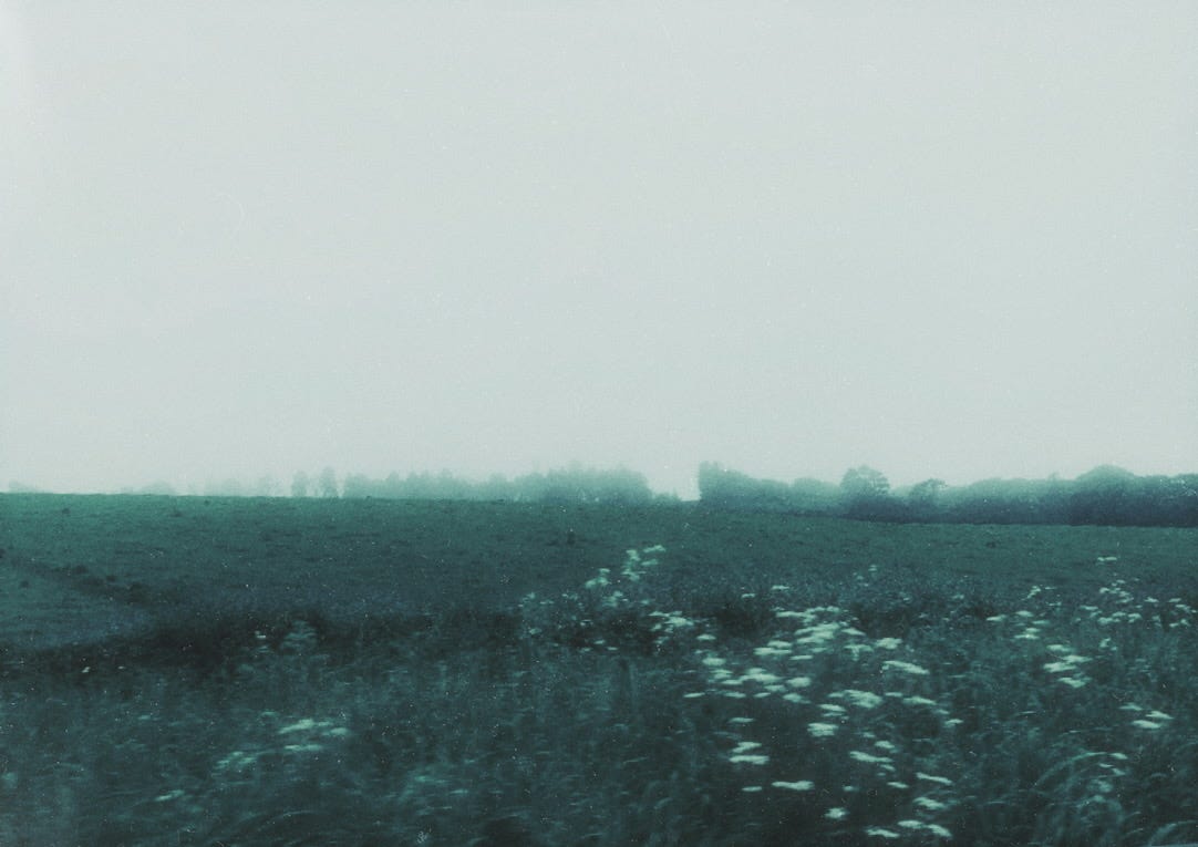 Photo: my own, moving past blurred fields.