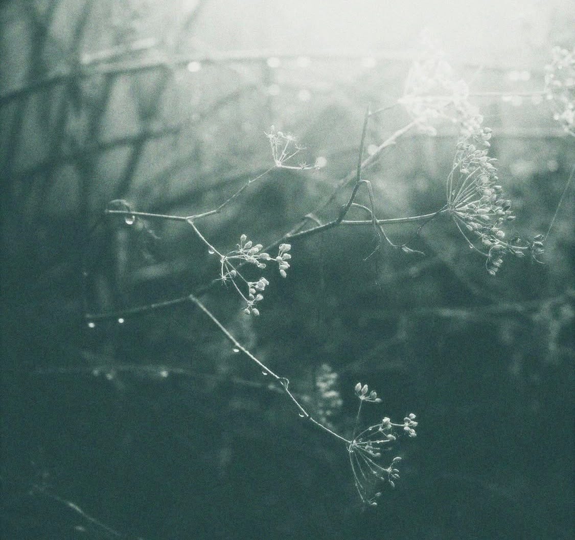 The sudden green dark of April afternoons. Black umbrellas passing. I don’t have one; rain soaks my hair through to the shoulders – cold at the collarbone.
